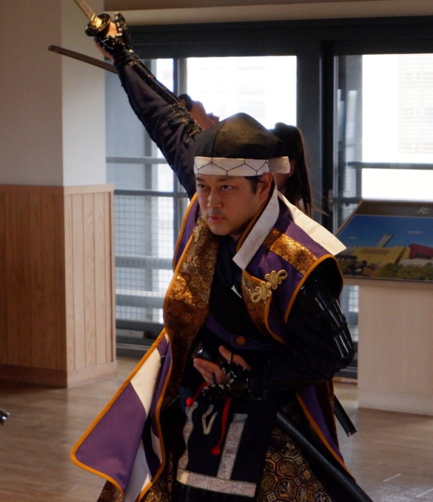 武将隊はお芝居だけでなく、音楽に合わせて演舞する殺陣パフォーマンスも必見です。